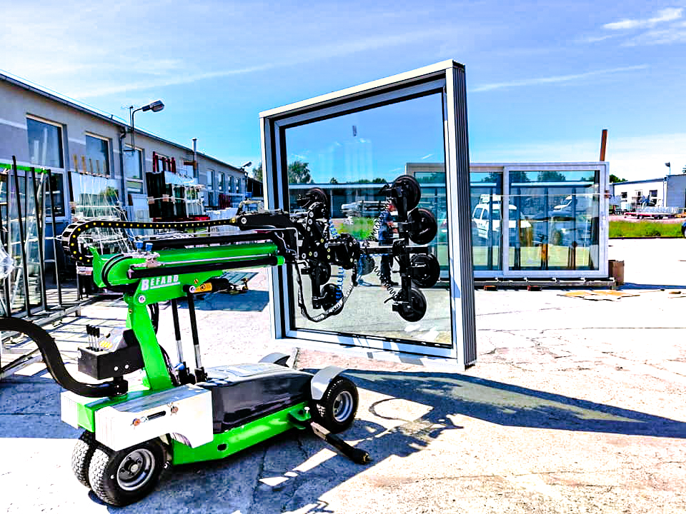 W swojej ofercie firma BEFARD posiada również bestseller wśród manipulatorów do szkła – hydrauliczno-elektryczny robot BEFARD XC na kołach o udźwigach nawet do 800 kg i zasięgach do 4,95 metra.
