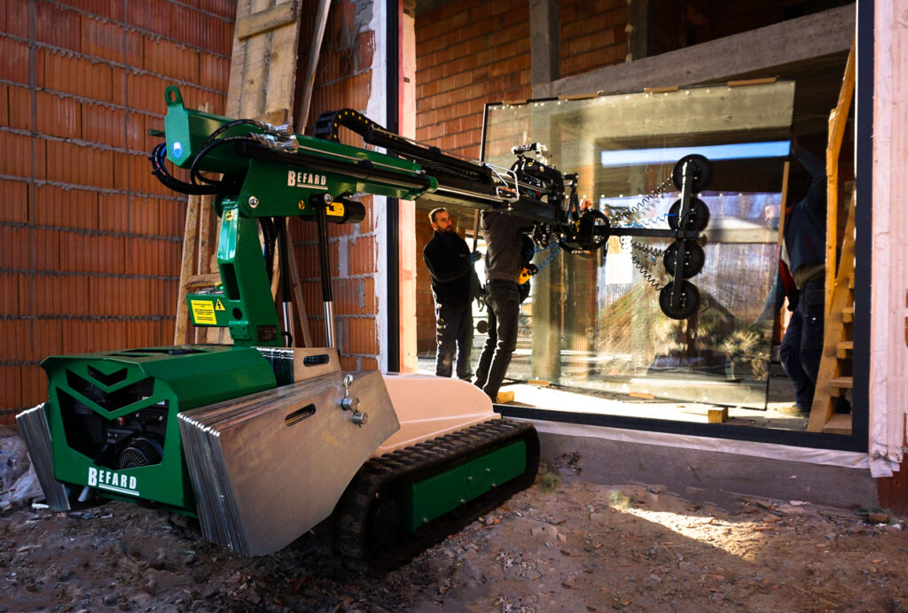 Kolejnym idealnym rozwiązaniem dla prac w trudnym terenie jest robot montażowy do szkła na podwoziu gąsienicowym BEFARD XGR. Łączy on w sobie mobilność mini żurawi na podwoziach gąsienicowych BEFARD TB z kompaktowością i precyzją ramy robota BEFARD XC. Zasięg robota BEFARD XGR to 4,25 metra a jego maksymalny udźwig to nawet 800 kg. Stosunkowo niewielka waga robota BEFARD XGR pozwala na jego łatwe transportowanie na teren budowy.