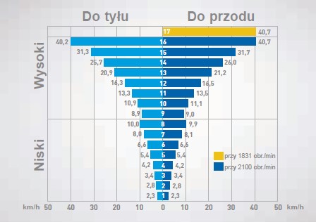 Przekładnia ta umożliwia wybór ośmiu przedziałów biegów i prędkości za pomocą przycisków zmiany biegu znajdujących się na dźwigni sterującej. Do zmiany zakresu wykorzystywany jest trzeci przycisk. Zamówienie dodatkowego 17 biegu w przekładni gwarantuje osiągnięcie prędkości 40 km/h przy niższym zużyciu paliwa.
