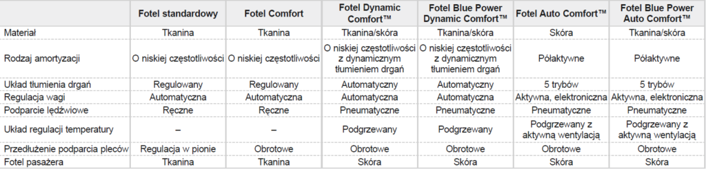 Fotel Dynamic Comfort™ to zaawansowany system amortyzacji oraz obustronne dwustrefowe dogrzewanie a także eleganckie wykończenie skórą i tkaniną.