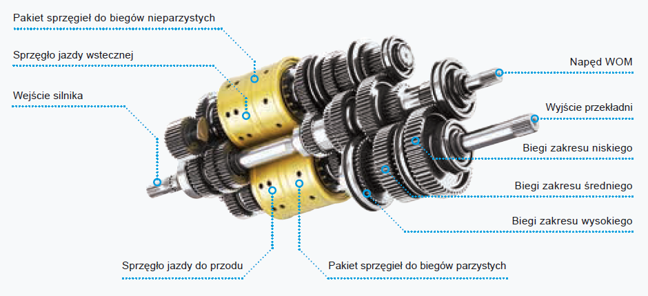 Przekładnia 24×24 Dynamic Command™ umożliwia przełączanie pomiędzy ośmioma biegami pod obciążeniem bez konieczności zmiany zakresów.