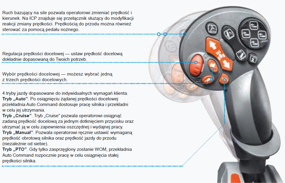 • Auto Command™ – przekładnia bezstopniowa w modelach z silnikami od T6.145 do T6.175