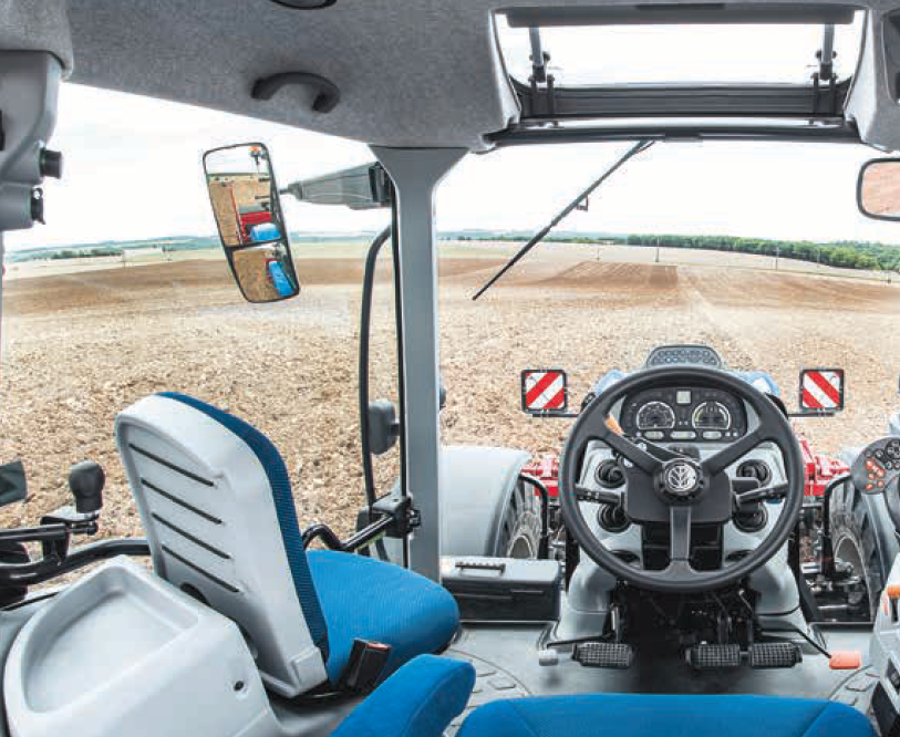W dodatkowej opcji można doposażyć ciągnik w regulowane elektrycznie i podgrzewane lusterka boczne, skórzaną kierownicę oraz dywaniki z długim włosiem.