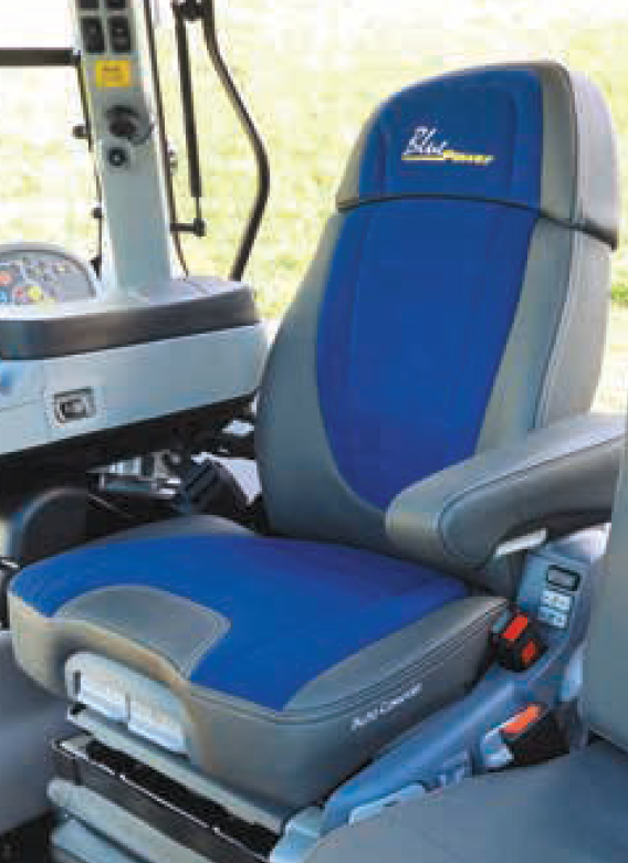 Fotel Auto Comfort™ – wentylowany fotel, dostępny tylko w modelach z przekładnią Auto Command™. Automatyczne ustalanie wagi operatora, aktywna amortyzacja, ogrzewanie i wentylacja, które chłodzą i usuwają wilgoć są idealnym rozwiązaniem dla operatorów spędzających wiele czasu w ciągniku.