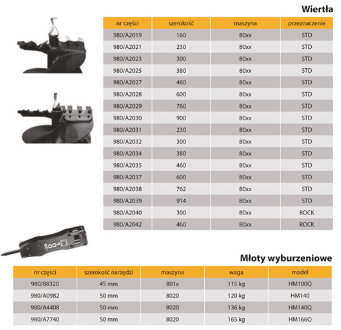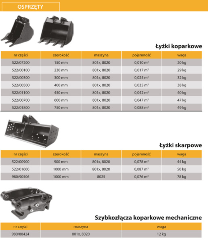 - nadzwyczaj wysoka moc skrawająca łyżki w modelu CTS 8018 jest to 16,2 kN natomiast w modeulu CTS 8020 19 kN