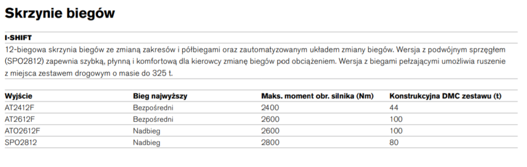 Obecnie I-Shift – wiodąca w branży zautomatyzowana skrzynia biegów jest dostępna także z jednym lub dwoma biegami pełzającymi oraz dodatkowymi biegami wstecznymi.