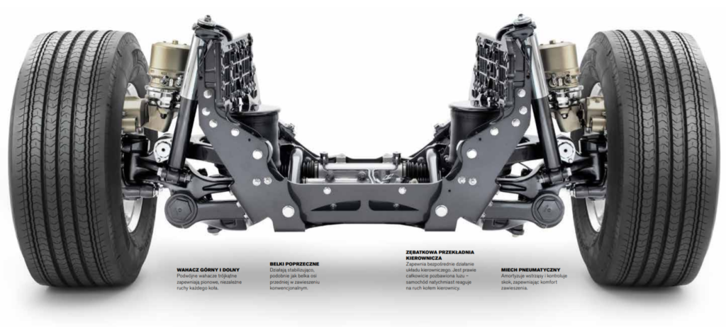 Najwyższy poziom komfortu zapewnia zawieszenie kabiny. Zmieniona lokalizacja przekładni kierowniczej. Precyzyjnie dobrana geometria przedniego zawieszenia. Wysoce efektywne zawieszenie silnika.