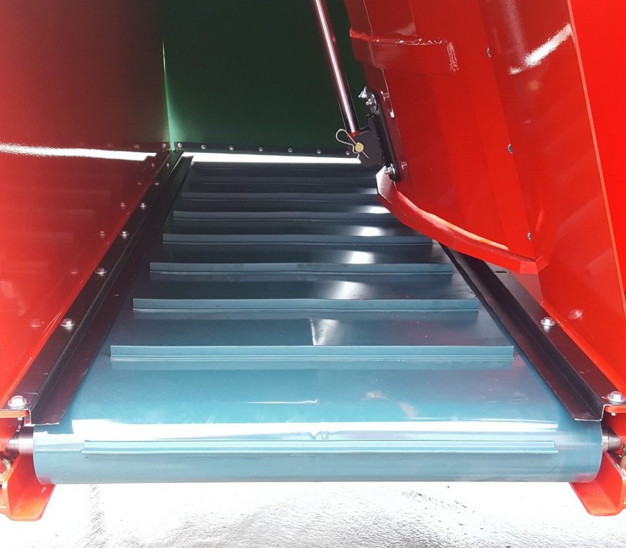 Wóz paszowy można dodatkowo wyposażyć w hydrauliczną taśmę wysypową dopasowaną do indywidualnych potrzeb każdego gospodarstwa.